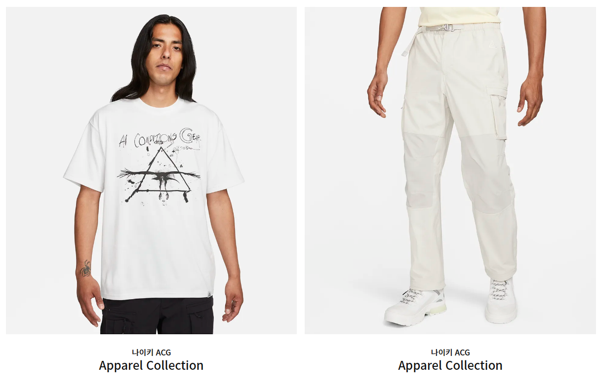다음으로 유명한것이 바로 나이키 ACG 입니다. ACG 는 All Condition Gear 의 약자로, 즉 모든 컨디션에서 사용 가능한 제품이 바로 나이키 ACG 라인입니다. 일상적으로 편하면서 등산과 해변에서 야외활동시에도 편하고 기능성 편하게 입을수 있는 것이 ACG 입니다. 대부분 나이키의 아웃도어류 제품들이 많아서 프리미엄 아웃도어 라인이라 생각하시면 편할것 같네요